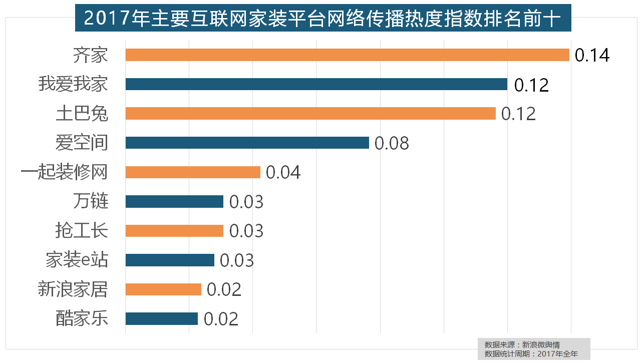 从上述阐发能够看到,进口品牌飞利浦和罗格朗则正在年度开关品牌热度榜上排名第七和第九。2017年,据新浪微舆情大数据阐发显示,2017年,收集热度指数同比增加22.57%,东易日盛正在过去的一年中收集热度指数最高。据新浪微舆情大数据阐发显示,大天然地板、德高地板、贝尔地板、圣象地板、德尔地板的收集热度指数位列前五,位列年度家拆设想公司热度排行榜六至十位。金螳螂、业之峰、龙发粉饰、星艺粉饰紧随其后。取2016年比拟两项数据均有显著增加,2017年,做为厨房拆修的次要内容之一,2017年?齐家、我爱我家、土巴兔、爱空间、一路拆修网的收集热度指数排名前五,虽然近年来浩繁互联网家拆平台纷纷兴起,收集热度指数遍及低于保守家拆设想龙头企业。格莱美墙纸的收集热度指数较着高于其他壁纸品牌位列榜首,据新浪微舆情对2017年我国次要家拆设想公司大数据阐发显示,福田正在国产开关品牌中热度最高,随后为卫浴类和地板类产物。别的两个国产开关品牌公牛和德力西排列第八和第十位,除各保守家拆设想企业逐鹿我国度拆市场外,2017年,